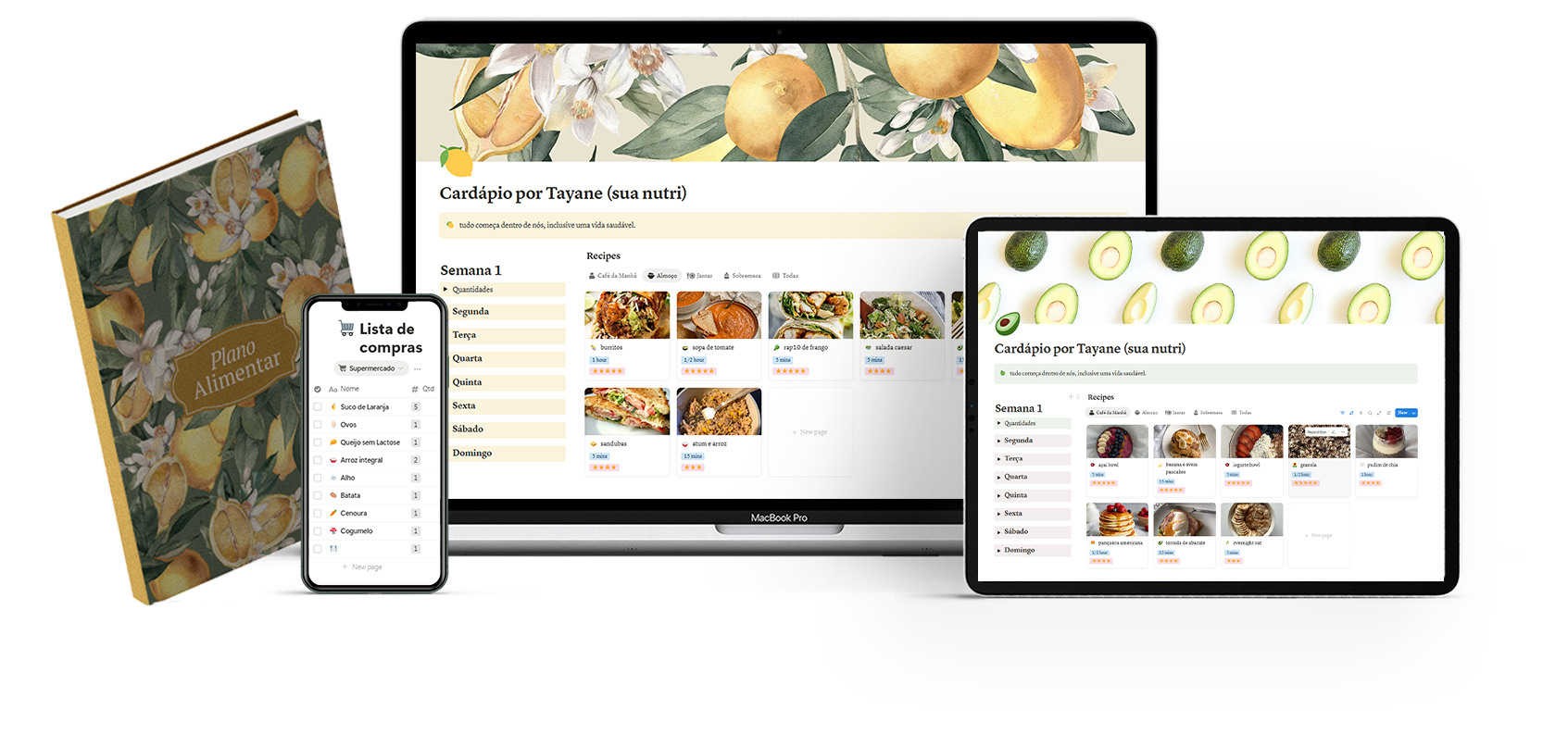 Cardápio no Notion, com refeições rápidas e lista de compras — pensado pra sua rotina e sem complicação.